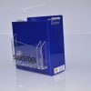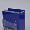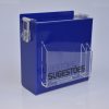 Caixa de sugestões em acrílico azul escuro translúcido (não transparente).